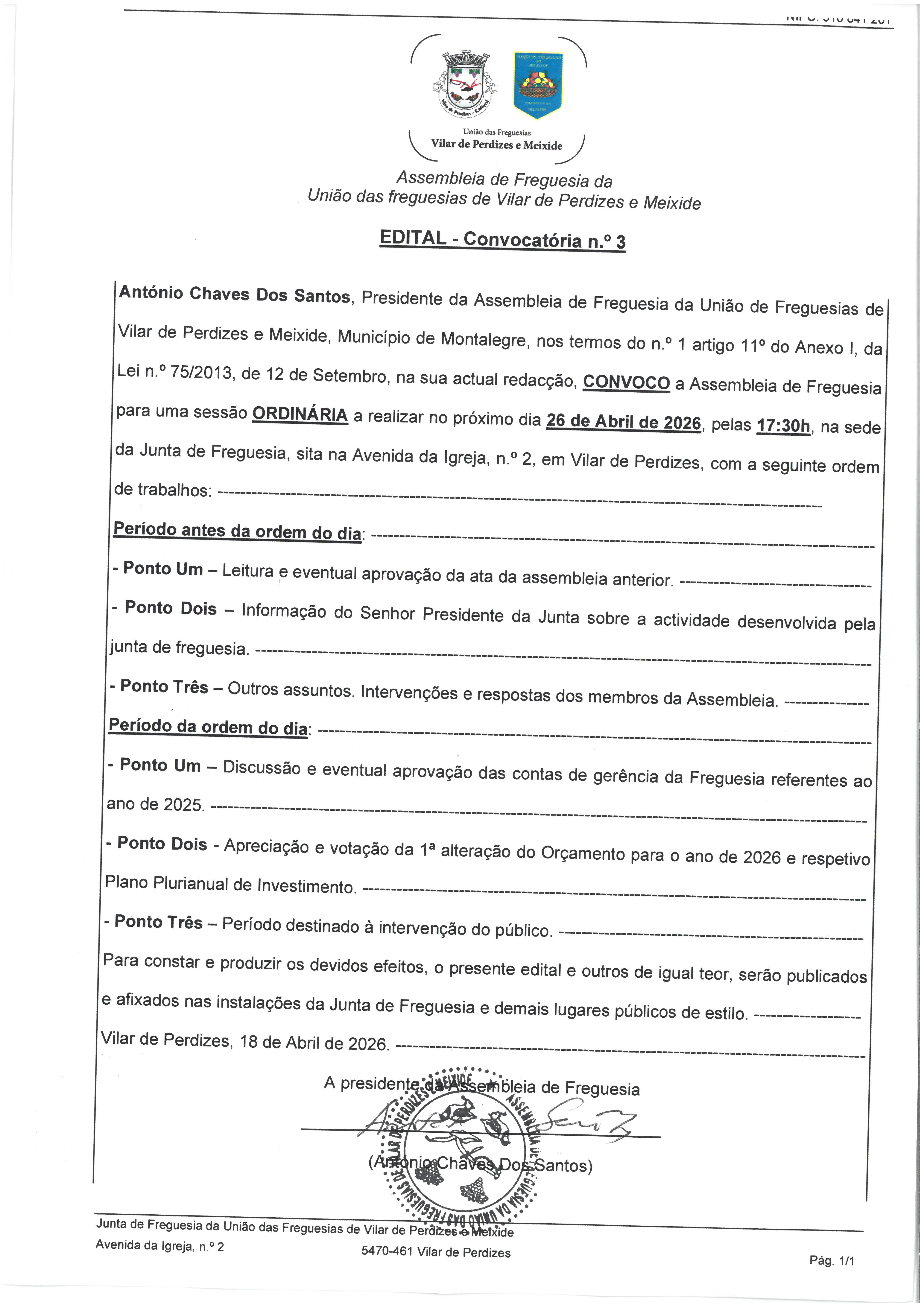 © 2026 União das Freguesias de Vilar de Perdizes e Meixide. Todos os direitos reservados | Termos e Condições | * Chamada para a rede fixa nacional.